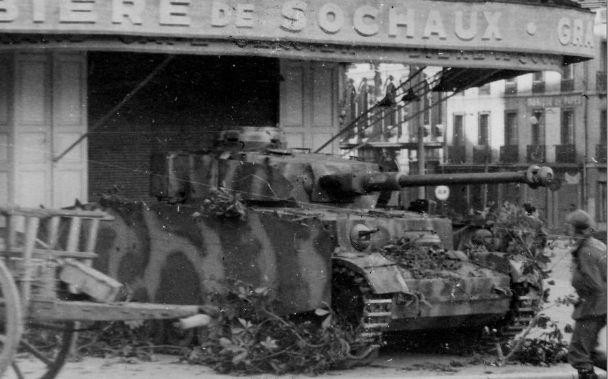 A Panzer IV Ausf. H or J which was part of the 2nd SS Panzer Division. Due to the Allied air supremacy, the German tanks were quite exposed to enemy bombing raids. In order to hide the vehicle, the crew placed it close to a 1944 building.