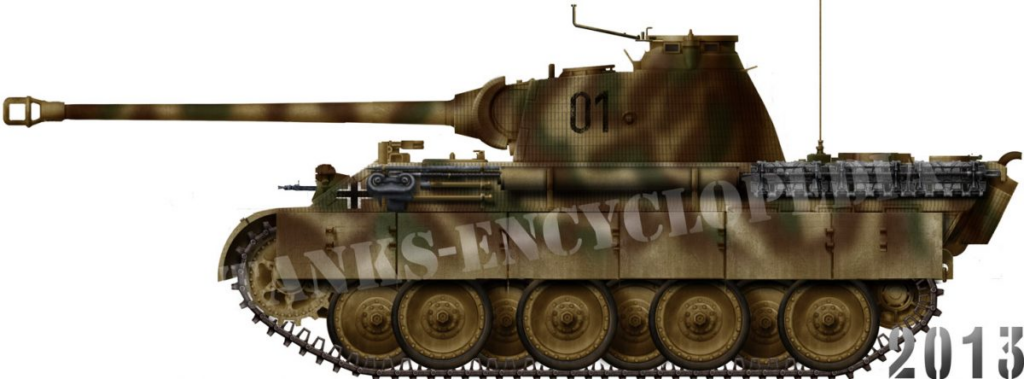 The Panther had a Maybach HL 230 P30 V12 water cooled 600hp gasoline/petrol engine. The tank could go 46 km/h (28.5 mph) on the road. The operational range was 200 km (124 miles). The Panther had a crew of 5 a driver, gunner, loader, radio operator, and commander. The Panther had a main: 7.5 cm Kw.K.42 L/70, and a secondary 2x 7.92 mm MG 34 machine guns. The armor on the Panther was 16 to 80 mm (Turret front 100-110 mm).