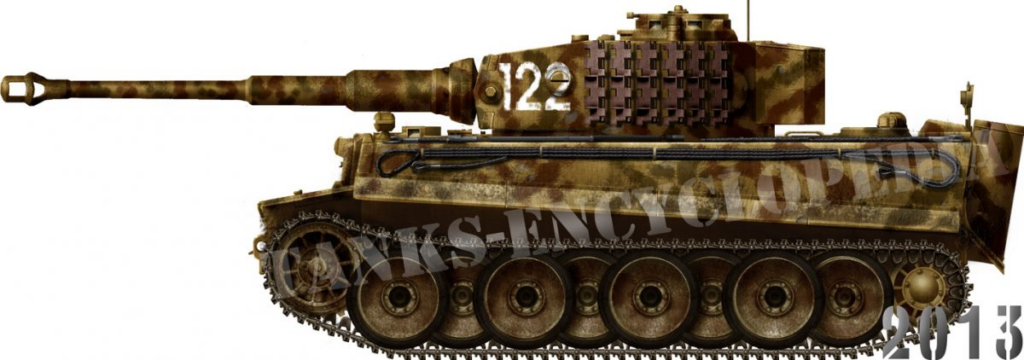 The Tiger had incredible armor and it was very strong angled Hull:Driver’s plate 100mm @ 9ºNose 100mm @ 25ºGlacis 60mm glacis @ 80ºHull Sides Upper 80mm @ 0ºHull Sides Lower 60mm @ 0º Rear 80mm @ 9º Roof and Belly, 25mmTurret: Mantlet 120mm @ 0º Front 100mm @ 5º Sides and Rear 80mm @ 0º The Tiger had a powerful 8.8 cm Kw.K. 36 L/56 gun, coaxial 7.92 mm M.G. 34, hull mounted M.G. 34, roof mounted anti-aircraft M.G. 34. The Tiger had a crew of 5, a driver, gunner, loader, radio operator, and commander.